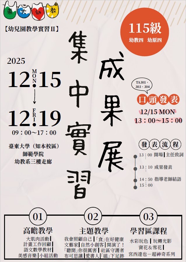 <![CDATA[【師資培育中心】國立臺東大學114學年度小學/幼教/特教 教學實務能力檢測,歡迎報名參加!]]>